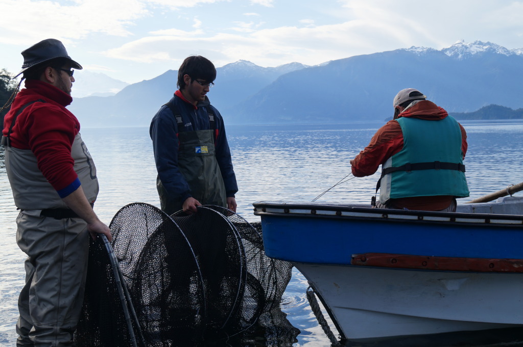 Setting fyke nets at Lago Todos Los Santos